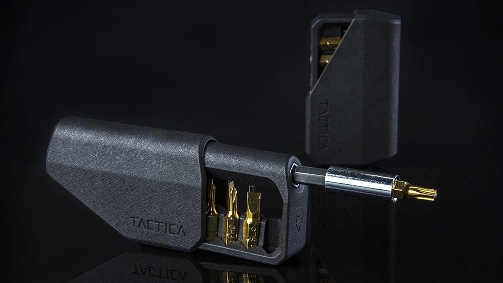 12 x hex bits including: Allen (3mm, 4mm, 5mm) Phillips (1.8mm, #0, #2) Flat (1.8mm, #3,#5) Torx (T10, T15, T25)